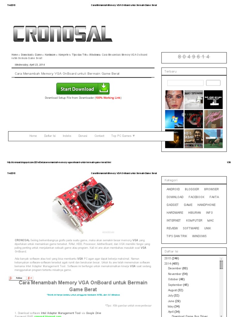 Jadi, harap bersabar saja jika kamu belum punya dana dan laptopmu mulai melemot. Menambah / upgrade ram secara manual. Memori dari vga akan mengambil dari ram. Nov 10, 2014 · kedua cara menambah memory vga onboard komputer / laptop diatas akan memaksimalkan kinerja vga, karena kita sudah mensetting ram untuk membagi memory yang dimilikinya untuk dibagikan kepada vga, jadi saat bermain game berat sekalipun bisa kita mainkan dengan lancara tanpa adanya lemot / lag. Tidak heran, banyak orang mempertimbangkan spesifikasi vram terlebih dahulu sebelum membeli komputer baru.